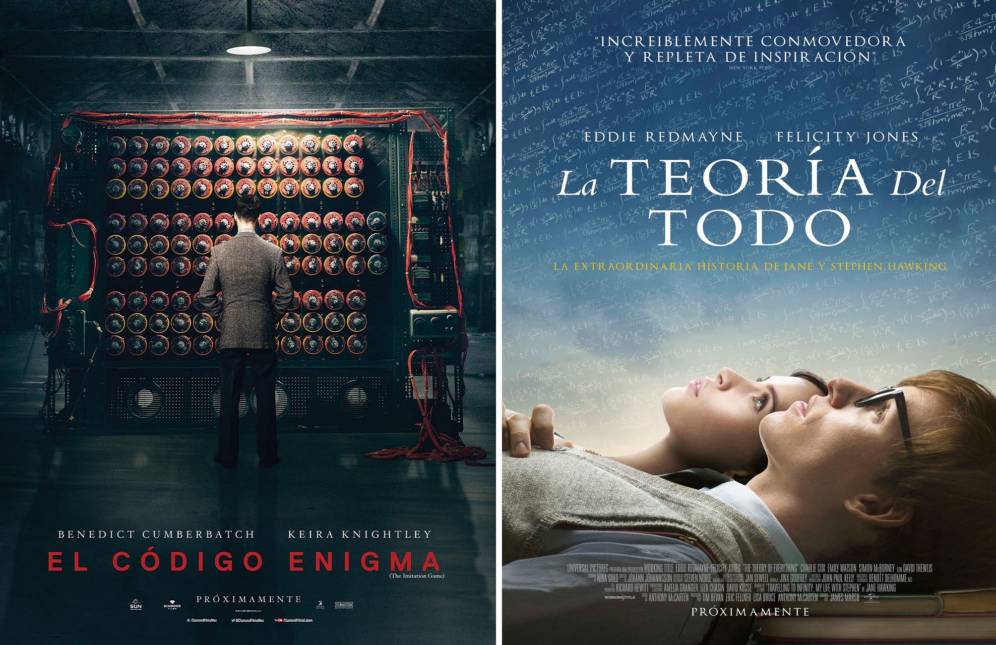 Mientras que en El Código Enigma nos presentan la historia de Alan Turing, un matemático que lideró una misión secreta para terminar con la Segunda Guerra Mundial, en La Teoría del Todo se cuenta cómo pese a padecer Esclerosis Lateral Amiotrófica, Stephen Hawking se convirtió en una de las mentes más brillantes de nuestro tiempo.