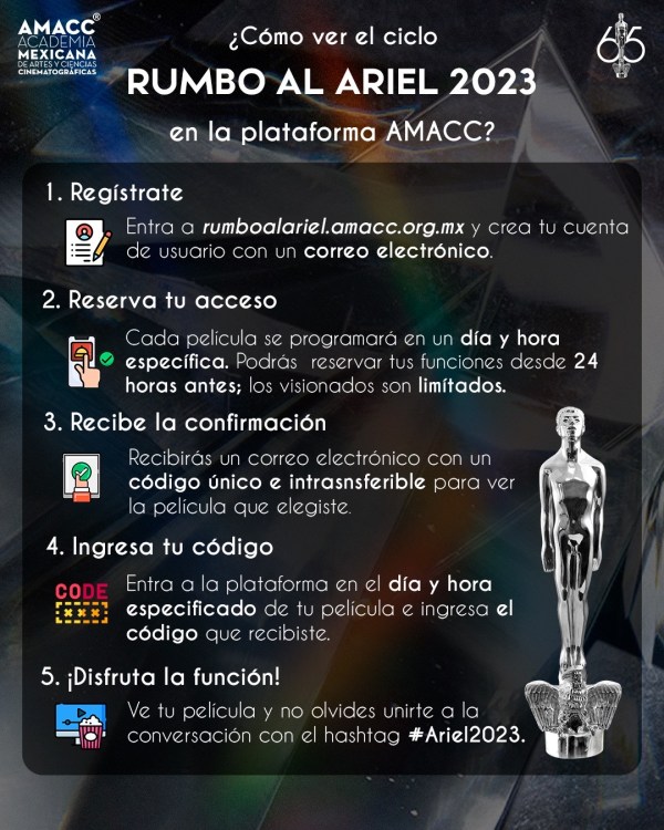 Otra opción para ver las películas nominadas es a través del Ciclo Rumbo al Ariel, lo único que debes hacer es seguir las siguientes instrucciones:
