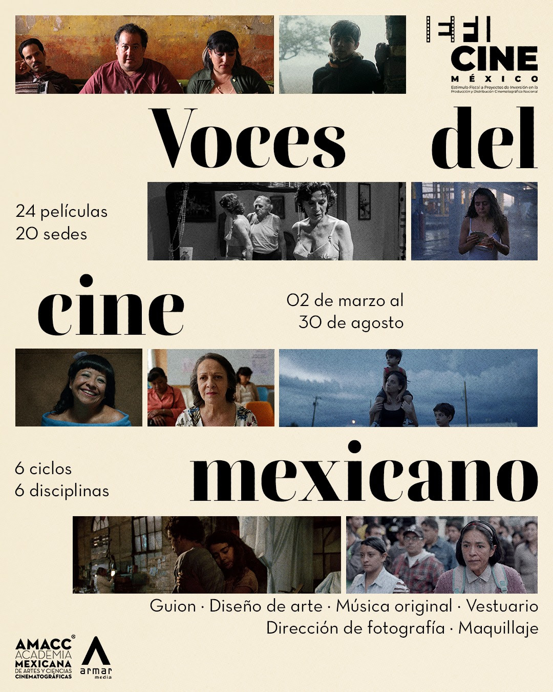 Para más información sobre sedes y horarios, se puede consultar el portal imcine.gob.mx